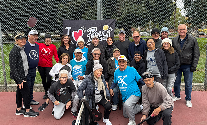 “They’re a wonderful community,” said Michael Blower, Stockton’s District 3 City Council member. “Linda reached out to me and told me about the group, so I stopped by on a Saturday,” he said. “And next thing I know there are 60 people and I’m giving an impromptu speech and being taught how to play!” Councilman Blower helped champion their plan for funding to renovate the Grupe Park tennis courts into the city’s first official pickleball court. Their request was recently granted, and construction of ten pickleball courts with a communal center aisle and increased seating is slated to begin in spring 2026.