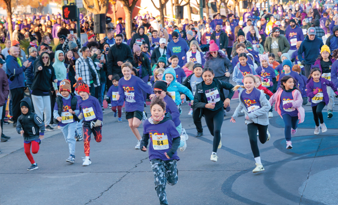 Melissa Pfeifle’s husband and her two sons run the event while she and other family members cheer them on at the finish line. They made it a family tradition beginning in 2021. “This is such a great community event,” Melissa said. “People are genuinely happy to be there. There’s music playing, people dressed up in costumes, a lot of families and everyone there working is smiling and so friendly.” Melissa and her son, Jake, said that the atmosphere is one of gratitude and giving. “There’s a warm spirit in the crowd. People aren’t just running for fun; they’re running to make a difference.”