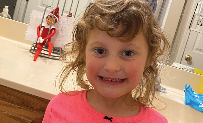 This picture is from last year with my youngest daughter, Aubrianna. She was so darn excited to find Jingle Bell that morning in our bathroom. She was even more excited to see that Jingle Bell left a special message for her. “I love you.” It is a simple message but one that carries an impactful feeling when you hear it.
