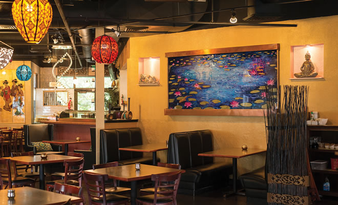 “What makes us different from the usual Asian or Chinese restaurant is our concept of a fusion menu; that’s a combination of flavors from Thailand, India, Korea, Vietnam, Japan and China,” explained Toffee. “Also, we have a full sushi bar. We have a very small sushi freezer because we order fresh more often than most restaurants.” That’s important because many of her customers moved here from California, so they know their sushi.